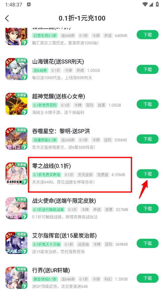 4. 點(diǎn)擊游戲旁"下載"按鈕