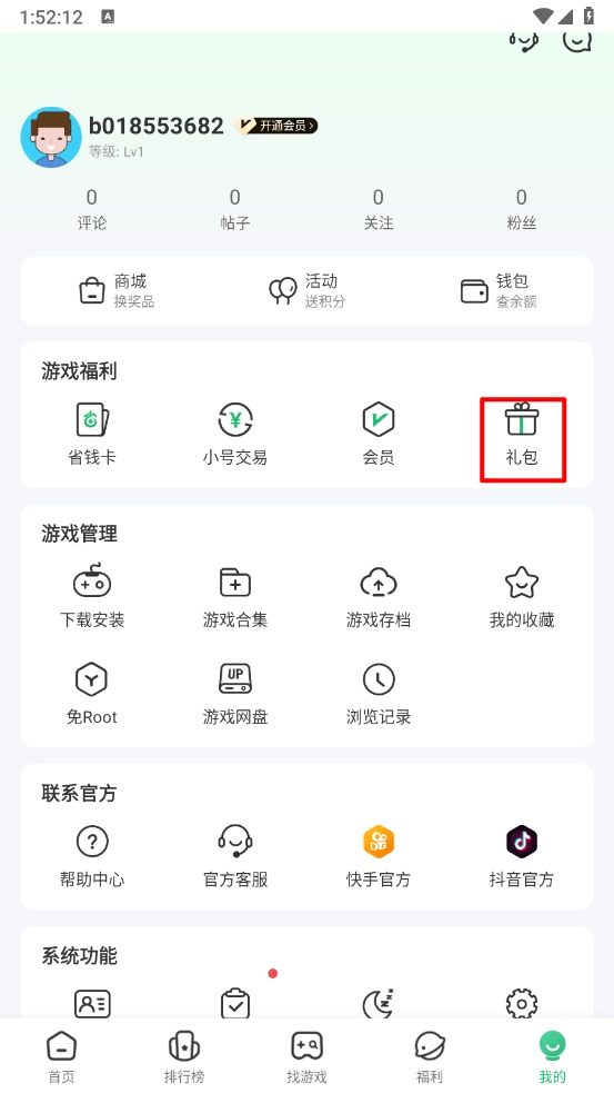 2. 點(diǎn)擊"禮包"功能入口
