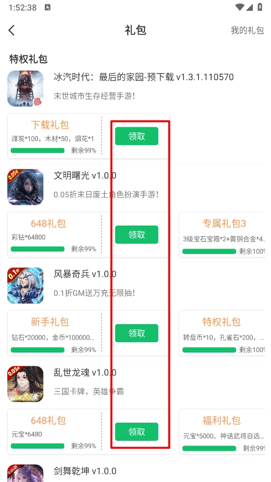 3. 瀏覽禮包列表選擇所需游戲福利