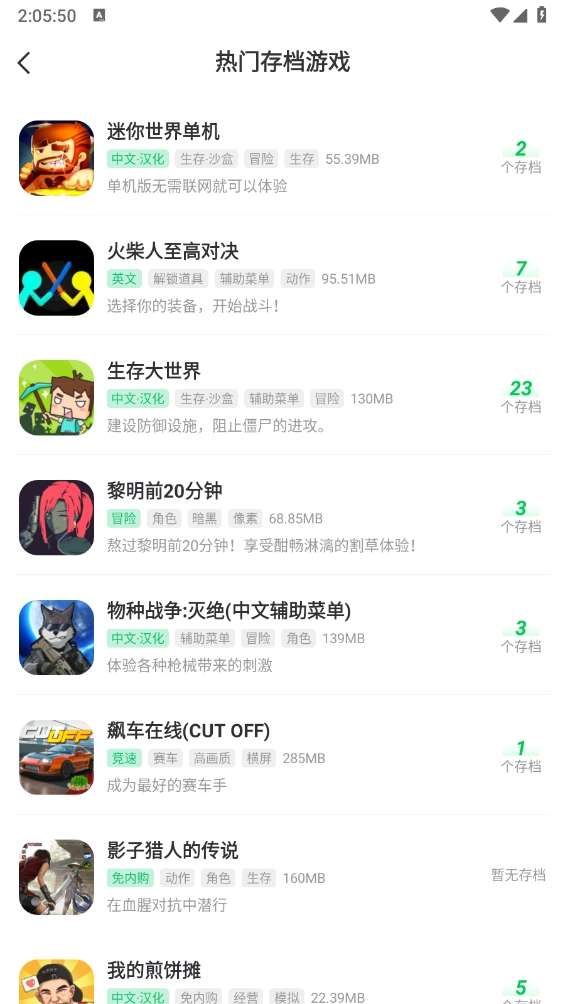 僅展示已啟動(dòng)且支持存檔功能的游戲