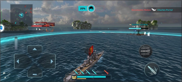 使用左側(cè)的虛擬方向鍵來(lái)操控戰(zhàn)艦移動(dòng),通過(guò)靈活調(diào)整戰(zhàn)艦的位置,以此來(lái)躲避敵方的火力攻擊。