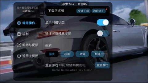 啟動游戲后,你會看到畫面和流暢度與完整客戶端幾乎沒什么差別,只是多了延遲率、丟包率之類的顯示信息。