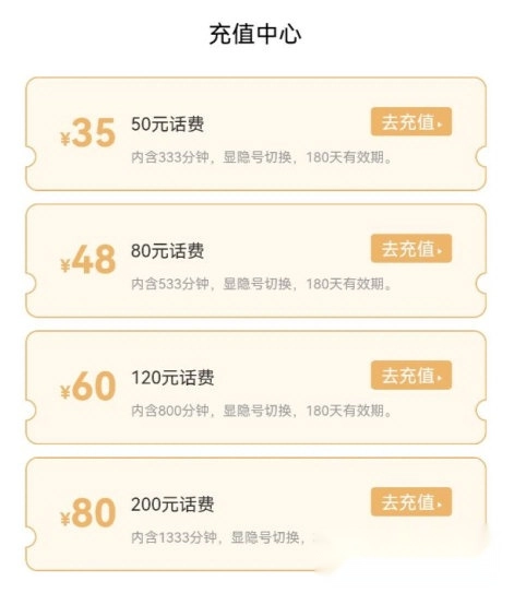 在充值中心就可以看到費(fèi)用標(biāo)準(zhǔn)